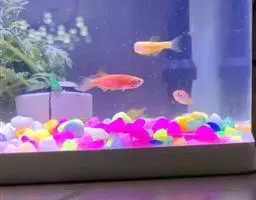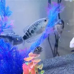 对于子鱼放养的密度,缸如果是40×25×30厘米的,放养的密度在50到60尾左右。密度过大,水质不宜控制容易发病,千万注意,密度过小,缸大鱼少,子鱼不用抢食会导致兴奋度和运动缺乏,从而到影响生长速度的,这是很多玩家没注意到的地方,需要注意。一般在2周后,就会看到随着子鱼的长大,缸的密度也随着增大起来,这时候如果再不增加空间,就会影响到子鱼的生长速度了。这时就将它们移到50*40*30的缸中,给它们宽阔的空间,为它们进一步的快速发育提供更好的条件。
