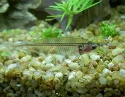 雌鱼身体较粗壮,最大体长可达7厘米左右,体色暗淡,呈肉色,稍透明,背鳍和尾鳍的颜色较雄鱼逊色得多,多为单一银灰色,尾鳍上虽有一些花纹,但没有雄鱼的鲜艳,雌鱼的各鳍均较雄鱼的短,而体长约为雄鱼的2倍。