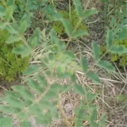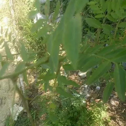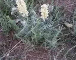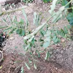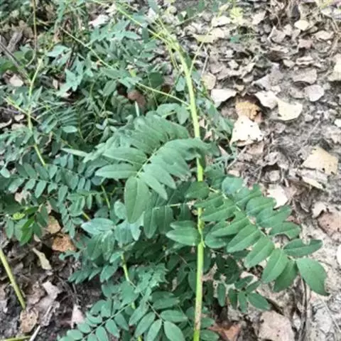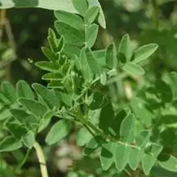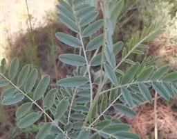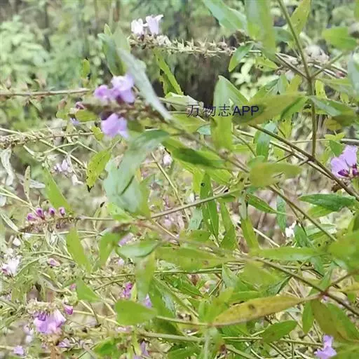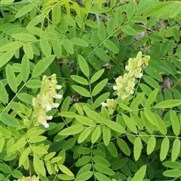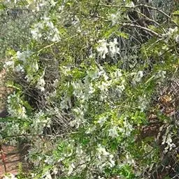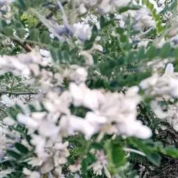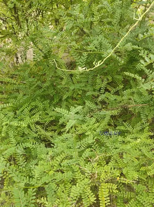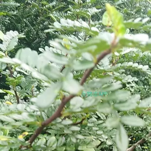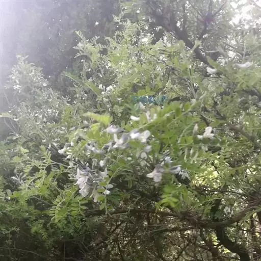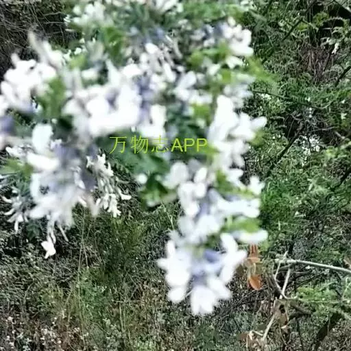 白刺花 灌木或小乔木,高1-2米,有时3-4米。枝多开展,小枝初被毛,旋即脱净,不育枝末端明显变成刺,有时分叉。羽状复叶;托叶钻状,部分变成刺,疏被短柔毛,宿存;小叶5-9对,形态多变,一般为椭圆状卵形或倒卵状长圆形,长10-15毫米,先端圆或微缺,常具芒尖,基部钝圆形,上面几无毛,下面中脉隆起,疏被长柔毛或近无毛。
