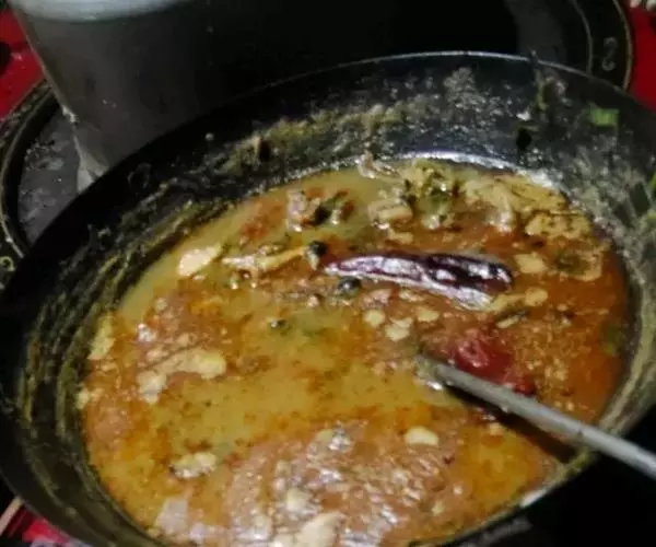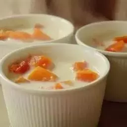 3、 烧热油半汤匙,爆香姜片、虾米,加入水烧滚,放入腐竹滚20分钟,加入海鲜,候再滚,即下芫荽,以少许盐调味便成。