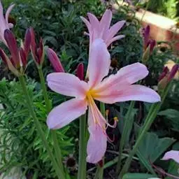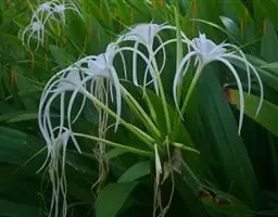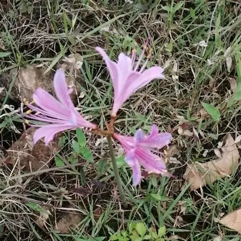 长筒石蒜草本,地生。鳞茎卵球形;叶披针形;伞形花序,有花5-7朵,花白色;花被裂片腹面稍有淡红色条纹,…
