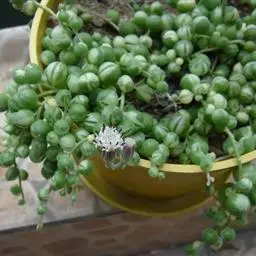 情人泪也叫佛珠吊兰,佛珠吊兰的学名叫翡翠珠,菊科千里光属多年生常绿匍匐生肉质草本植物。佛珠吊兰原产…