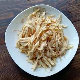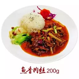 鸡胸肉、青笋、胡萝卜、大蒜、葱、干辣椒、盐、味精、胡椒粉、糖、醋、老抽、料酒、淀粉,热白饭一碗。