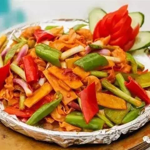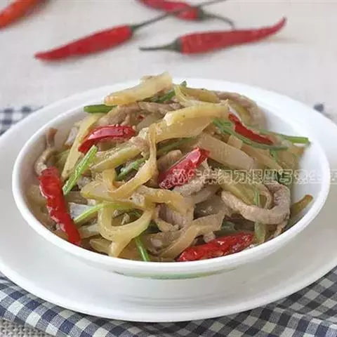 9、下莴笋丁翻炒片刻,勾湿淀粉,调入少许盐和味精即可。