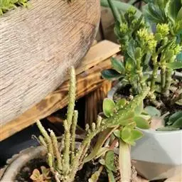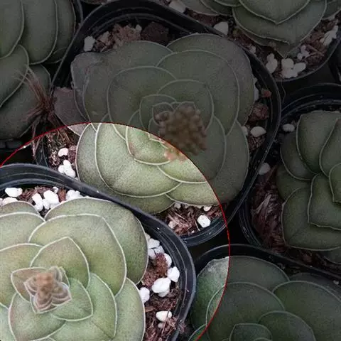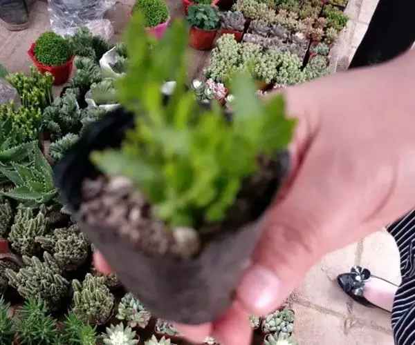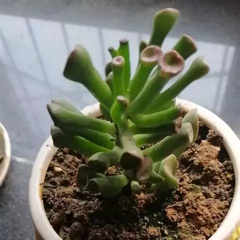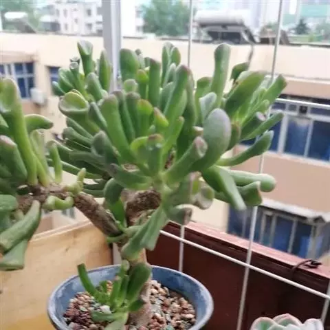 若绿繁殖一般就是砍头,取健康有生长点的枝条,按照3至5厘米高左右一段剪下,晾干伤口扦插,也可以直接扦插在干的颗粒土中,几天后少量给水,若绿是非常好繁殖的一个品种,叶片和叶片间也容易长出很多小根。碰到合适的土壤就会把根牢牢扎在土里。