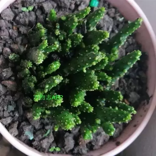 若绿养在全日照的阳光房里,生长期需保持土壤湿润,避免积水。土壤用了煤渣混合泥炭、少量珍珠岩,比例大概5:4:1。若绿能耐零下2℃左右的低温,是室内的温度,非露天,再低叶片的顶端生长点就会出现冻伤,干枯死亡,来年会在枯萎处重新萌发新侧枝。