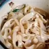 它是一种荤、素、汤、菜、饭聚而有之的传统风味小吃,以味道鲜美,经济实惠,享誉中原,遍及全国。烩面按配料不同可分为羊肉烩面、牛肉烩面、三鲜烩面、五鲜烩面等。河南烩面所用的面为扯面,类似于拉面,但稍有不同。一般用精白面粉,兑入适量盐碱和成软面,经反复揉搓,使其筋韧。烩面的精华全在于汤,羊肉汤要选用上好鲜羊肉,经反复浸泡后下锅,撇出血沫,放入全大料,将肉煮烂。下面时,锅内放原汁肉汤,将面拉成薄条入锅,放上羊肉,配以黄花菜、木耳、水粉条。上桌时外带香菜、辣椒油、糖蒜等小碟,其味更鲜。因为面香肉烂,味道浓郁,而且价格便宜,它成了中原地带最典型的风味小吃。