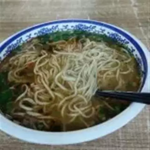秘制炒卤:干煸羊肉,炒黑酱。精选山羊肉切丁备用,葱姜香料备用。油热,葱姜炸黄,煸炒羊肉30分钟左右,改小火加秘制黑酱翻炒10分钟。纯手工烩面,清汤煮面,煮熟后配以榨菜丁、虾米、秘制炒卤盛碗。面筋、味美,卤香四溢。