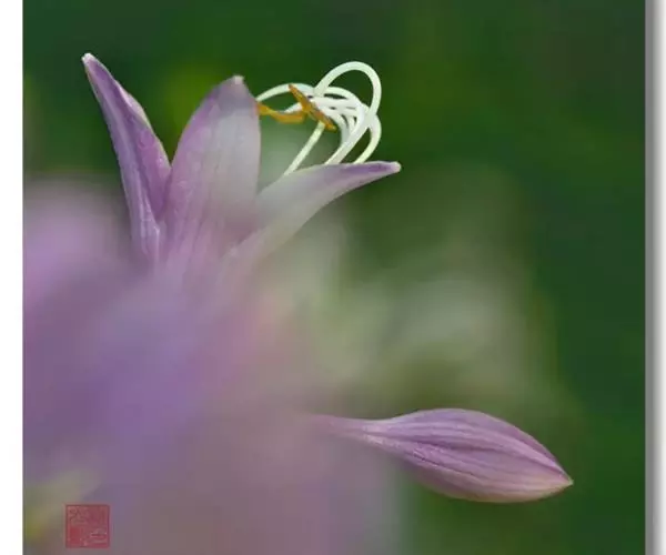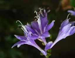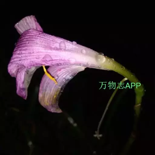 花葶高33-60厘米,具几朵至十几朵花;苞片近宽披针形,长7-10毫米,膜质;花单生,长约4厘米,盛开时从花被管向上逐渐扩大,紫色;雄蕊稍伸出于花被管之外,完全离生。花期8-9月。