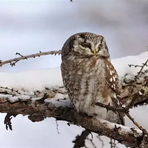 褐林鸮是夜行猛禽。喙坚强而钩曲。嘴基蜡膜为硬须掩盖。翅的外形不一,第五枚次级飞羽缺。尾短圆,…