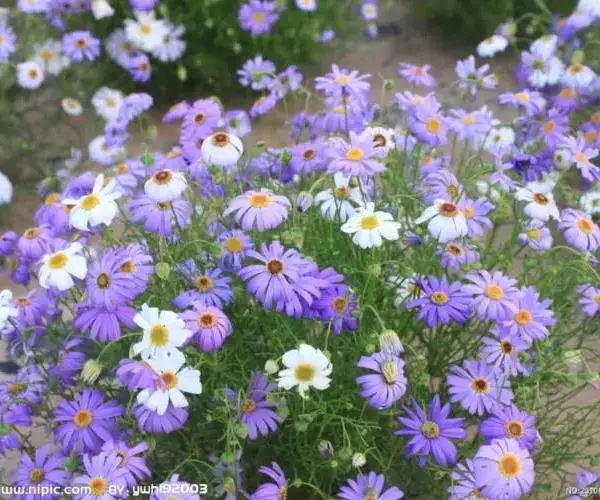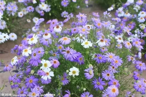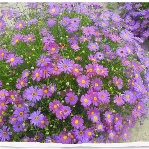 五色菊,株高20~45厘米,花径4厘米,花色丰富,适生于干燥向阳环境。原产于澳大利亚。