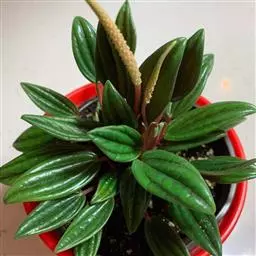 圆叶椒草直立性植株,高约30 cm。单叶互生,叶椭圆形或倒卵形。叶端钝圆,叶基渐狭至楔形。叶面光滑…