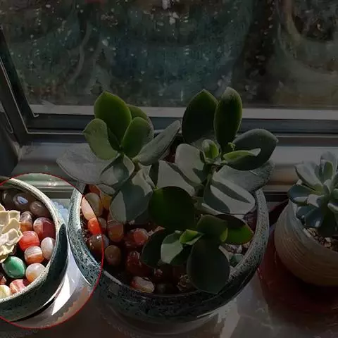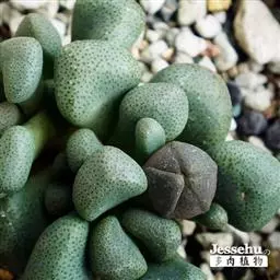 荒玉为番杏科生石花属,原产南非。株体呈白粉色,表面布满凹凸纹路,凹陷处为红褐色,每年秋季开黄花。