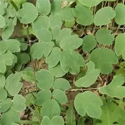 展枝唐松草 多年生草本植物。 植株全部无毛。根状茎细长,自节生出长须根。茎高60-100厘米,有细纵槽,通常自中部近二歧状分枝。基生叶在开花时枯萎。茎下部及中部叶有短柄,为二至三回羽状复叶;叶片长8-18厘米;小叶坚纸质或薄革质,顶生小叶楔状倒卵形、宽倒卵形、长圆形或圆卵形,长0.8-2(-3.5)厘米,宽0.6-1.5(-2.6)厘米,顶端急尖,基部楔形至圆形,通常三浅裂,裂片全缘或有2-3个小齿,表面脉常稍下陷,背面有白粉,脉平或稍隆起,脉网稍明显;叶柄长1-4厘米。