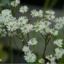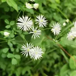 展枝唐松草 中国北京地区展枝唐松草大田栽培的种子采集时间为9月中下旬,育苗移栽的两年生的晚些,应在9月下旬。3年生以上的9月中旬即可采收。展枝庸松草种子为瘦果,此时瘦果为棕色至黑色.将种子连同花枝一同采收,放到干燥通风处待全部干透,可捏起花枝下端摔打使种子脱落,收集去杂,通风干燥处保存。花枝以下部分继续留在田中,待养分回流全部枯萎后割下并清园,将地表残枝落叶清理下净,深埋。