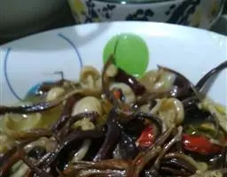 2、用沸水软化后同肉沫炒食。