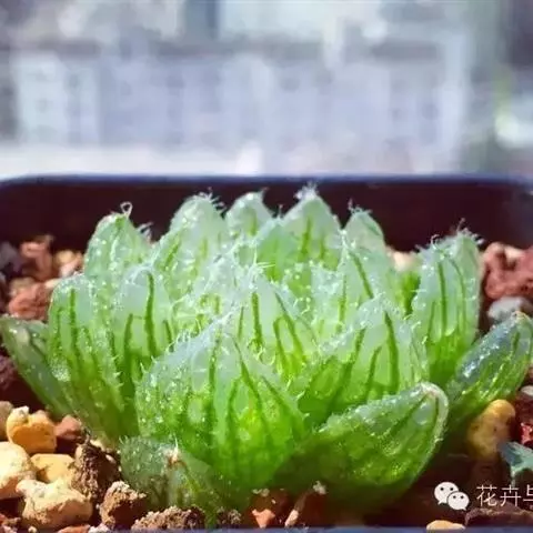 矮苇锦(拉丁学名Haworthia variegata var. modesta),百合科十二卷属/瓦苇属多肉植物。