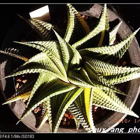 条纹十二卷 Haw.)是芦荟科十二卷属植物,为多年生肉质草本植物。植株高度10-15厘米,其呈莲座…