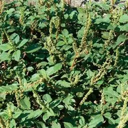 反枝苋是苋科苋属的一年生草本植物。株高达1米;茎密被柔毛;叶菱状卵形或椭圆状卵形,先端锐尖或尖凹,…