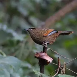 橙翅噪鹛:是噪鹛科、彩翼噪鹛属的中型鸟类,体长22-25厘米。头顶深葡萄灰色或沙褐色。上体灰橄榄褐色,…