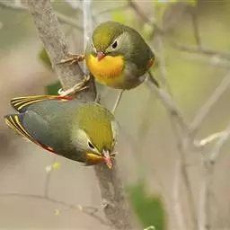 鸣叫声:鸣唱声为宏亮、婉啭、圆润而悦耳的“吐米酒”或“吐米-米-酒”。在小群活动时多以音节快速的“吱、吱”相呼应。