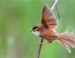 金眼鹛雀是莺科、鹛雀属小型鸟类。体长16-20厘米。头顶和上体棕褐色,两翅表面肉桂红色,…