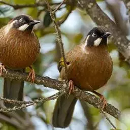 白颊噪鹛是雀形目噪鹛科噪鹛属鸟类,又称土画眉、小画眉、小噪鹃。成鸟额至头顶栗褐色,…