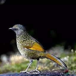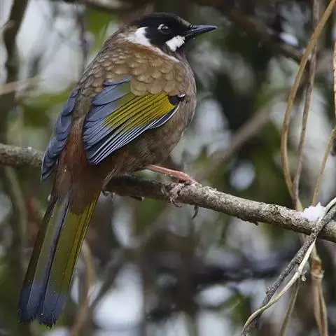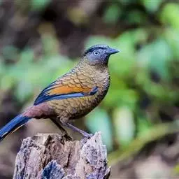 蓝翅噪鹛:噪鹛科、彩翼噪鹛属动物。中型鸟类,体长22-25厘米。上体棕橄榄褐色密被黑色鳞状斑,…