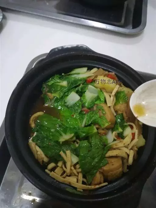 3、收汁一般采用砂锅收汁,其目的是能够长时间保留黄焖鸡的原香味。收汁时加上适当的时令蔬菜,让黄焖鸡兼顾肉、汤、菜齐全,色、香、味丰富。