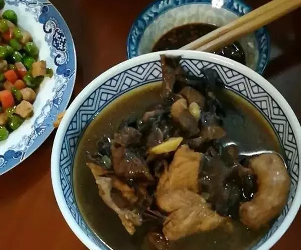 木耳科真菌,状如耳朵,系寄生于枯木上的一种菌类,富含铁、钙、磷和维生素B1等。黑木耳中铁的含量极为丰富,故常吃木耳能养血驻颜,令人肌肤红润,容光焕发,并可防治缺铁性贫血。黑木耳含有维生素K,能减少血液凝块,预防血栓症的发生,有防治动脉粥样硬化和冠心病的作用。木耳中的胶质可把残留在人体消化系统内的灰尘、杂质吸附集中起来排出体外,从而起到清胃涤肠的作用,它对胆结石、肾结石等内源性异物也有比较显著的化解功能。黑木耳含有抗肿瘤活性物质,能增强机体免疫力,经常食用可防癌抗癌。