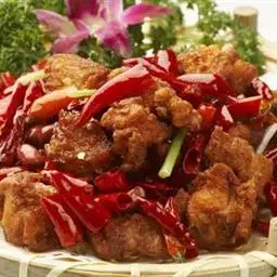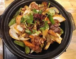 黄焖鸡米饭又叫香鸡煲、浓汁鸡煲饭,起源于济南名店“吉玲园”,是山东济南特色传统名菜之一。1927年,济南府鲁菜名店"吉玲园"由于名厨云集,佳肴迭出而红极一时,名商富贾、达官显贵纷至沓来,与当时的"汇泉楼"、“聚丰德"并称省城三大名店,其招牌菜"百草黄焖鸡”更是深受时任山东省主席韩复榘的喜爱,他曾为此赏银三十块,并称赞“此鸡匠心独运,是上品之上,当为一绝”。属于鲁菜系家常菜品,主要食材是鸡腿肉,配以青椒、香菇等焖制而成,味道美妙,具有肉质鲜美嫩滑的特点。其中以黄焖鸡米饭和八珍黄焖鸡最为出色,入口爽滑弹牙,汤汁鲜美。
