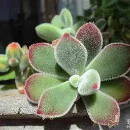 毛茸茸的毛、半边锯齿状的叶,缺口会再冒出小芽,夏型,喜光照、可直晒、耐热,适合春、秋。…