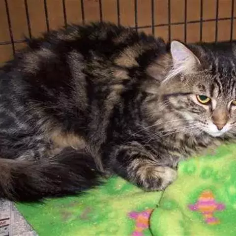 挪威森林猫外貌上和缅因库恩猫一模一样,挪威森林猫与缅因库恩猫的主要区别是:其后腿比前腿稍长,被毛双层。