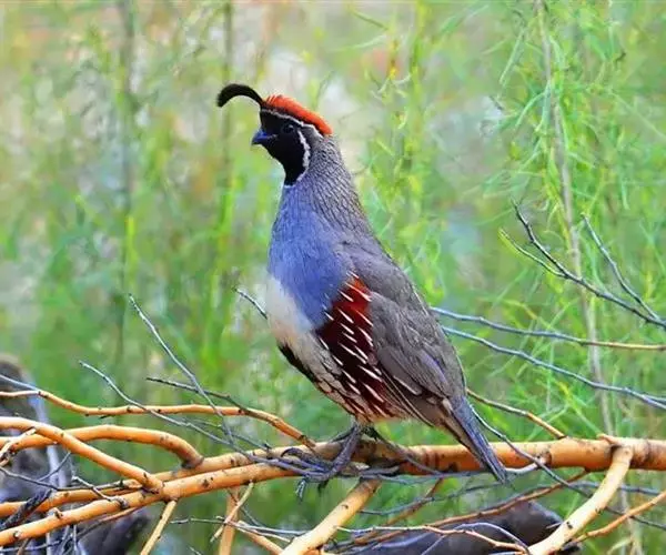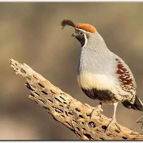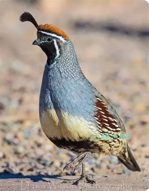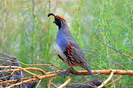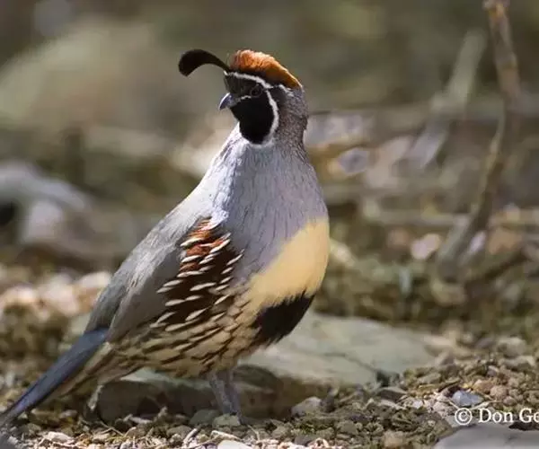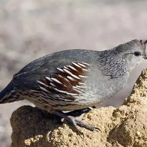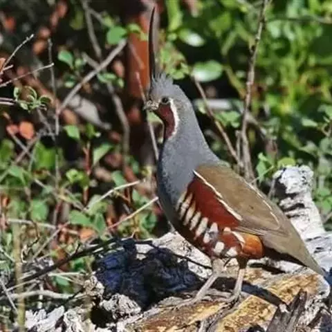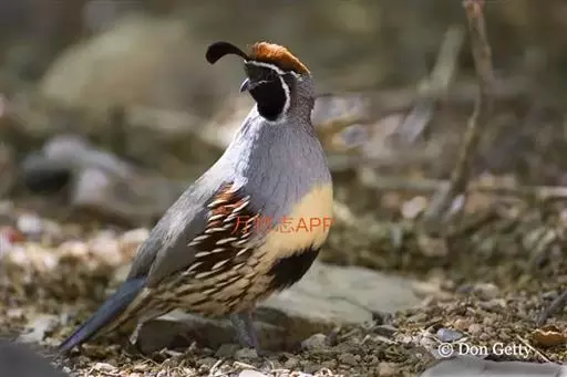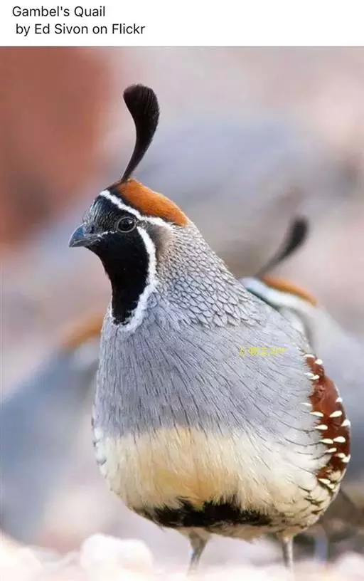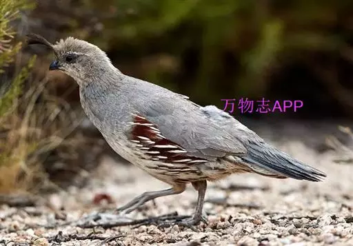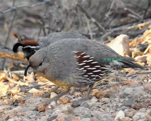 黑腹翎鹑(学名:Callipepla gambelii)属鸡形目齿鹑科,有7个亚种,分布区域不同个体略有差异。羽色绚丽、形态健美,雄鸟比雌鸟美丽。最显著的特点是额头上有一个黑色的弯曲冠羽,与珠颈翎鹑相似。主要的食物是种子、浆果,有时也吃一些树叶、草根和昆虫。觅食是多用脚趾挖后用喙取食。一般以2名成鸟和可变数量的亚成鸟组成小群,多达16只,有其特定的领活动区域。