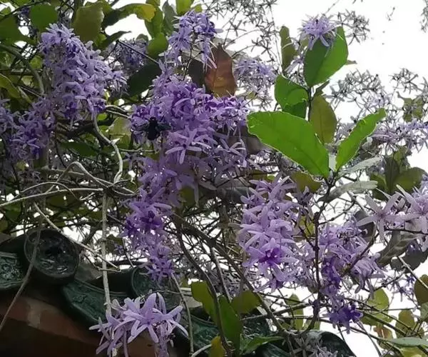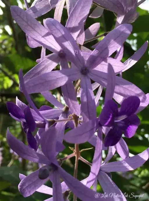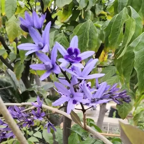 蓝花藤,是一种缠绕藤木植物,长可达5M以上。需要人工引种栽培,中美洲及西印度群岛;华南有引种栽培。
