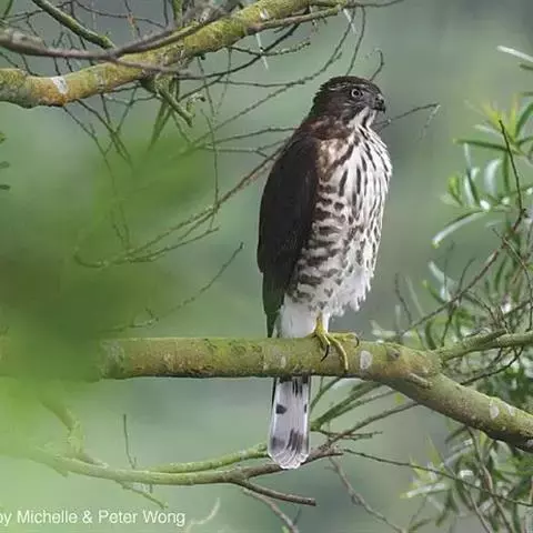 松雀鹰又名雀鹰、松子鹰,是鹰形目鹰科鹰属小型猛禽。雄鸟头顶至后颈黑灰色,眼先白色,…