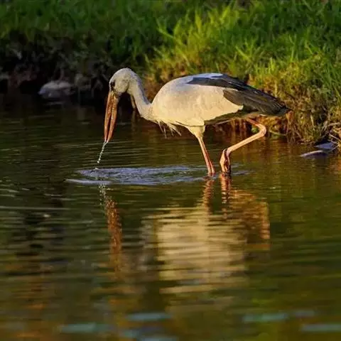 食性:主要以鱼为食,但也吃蛙、爬行类、甲壳类和昆虫等其他动物性食物,偶尔也吃少许植物性食物。通常成对或成小群在水边浅水处觅食,在雨季食物丰富的时候也常成大群。觅食时常在水边浅水处缓慢地行走,半张着嘴,脚一边在水中或泥中移动,一边探索,同时煽动两翅干扰它的潜在被捕获物,有时也通过嘴在水中来回运动来探觅食物。饱食后常单腿站立在岸上休息,身体呈驼背状。