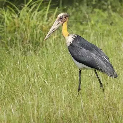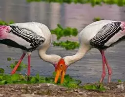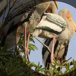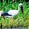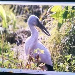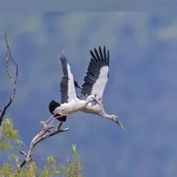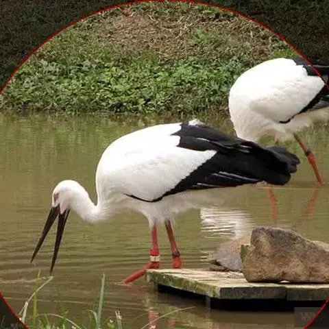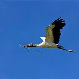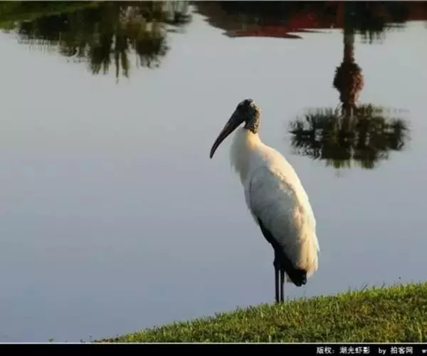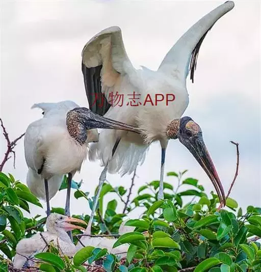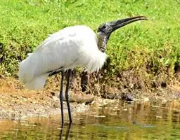 黑头鹮鹳(学名:Mycteria americana):大型涉禽。体长102厘米,翼展150-175厘米,体重2050-2640克。寿命10年。 嘴长而粗壮,飞时头颈伸直。雌雄相似。成鸟上体白色,下体白色。翼下覆羽有黑色横带,具绿色光泽和白色羽缘。虹膜淡黄色;嘴橙黄色;基部红色;脚灰黑色,趾粉红色。