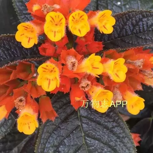 金红花为苦苣苔科多年生常绿草本植物,球根花卉。株高15~25cm 金红花 ;叶对生,阔披针形,叶面褐绿而有光泽,叶背紫褐色,叶缘有锯齿,叶脉明显而有细皱;花顶生或叶腋出,小花筒状,橙黄色。