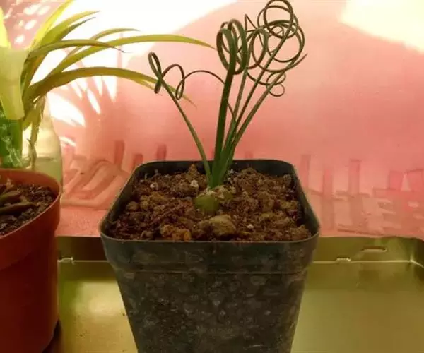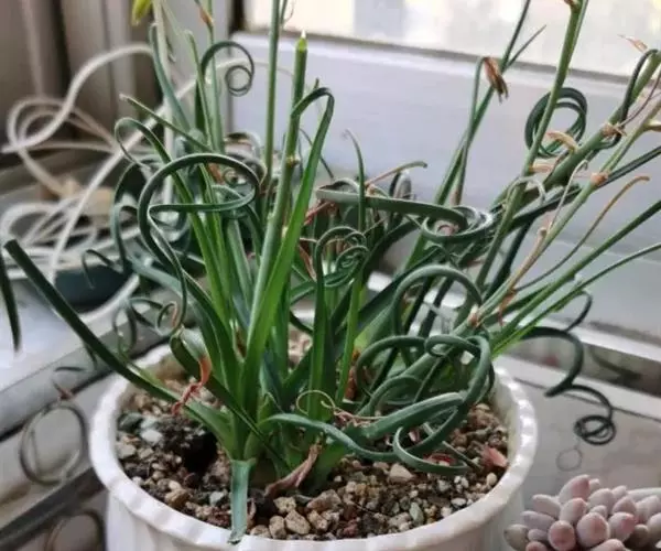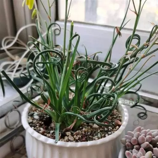弹簧草形态独特,鳞茎古朴,其线条流畅飘逸,富于变化,花淡雅清新,适合用小盆栽种,点缀于窗台、几案等处,奇特而有趣。