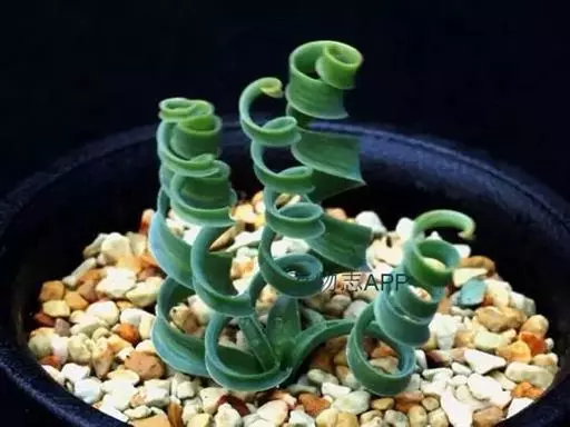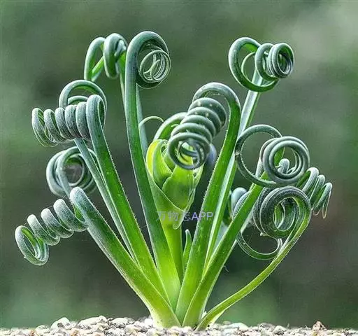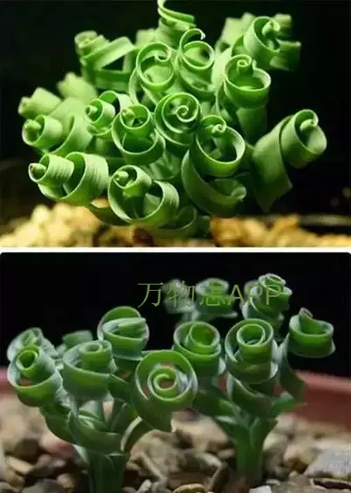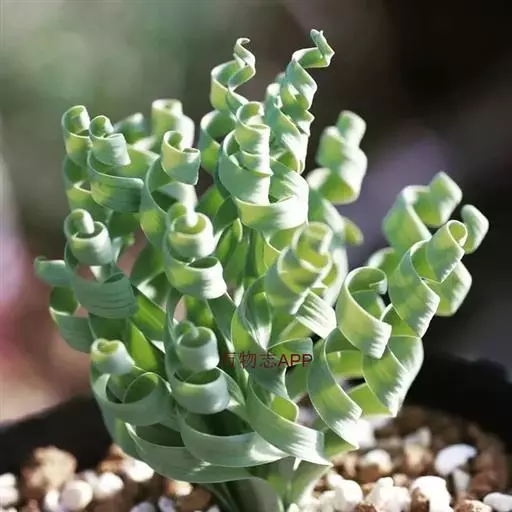 肉质叶由鳞茎顶部长出,线形,先端变细,表面光滑或有白色毛刺,叶先直立生长,后逐渐扭曲盘旋,致使叶前端呈弹簧状。