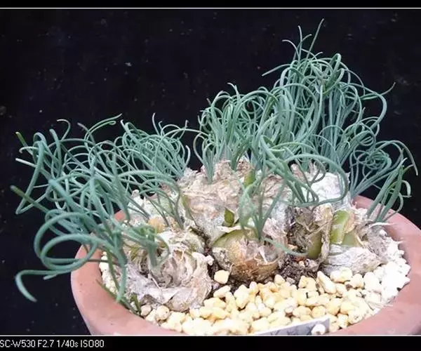 多年生鳞茎类肉质植物,株高30厘米。植株具圆形或不规则形鳞茎,单 弹簧草 个直径约2-6厘米,鳞茎地下部分表皮为黄白色,露出土面部分为绿色。