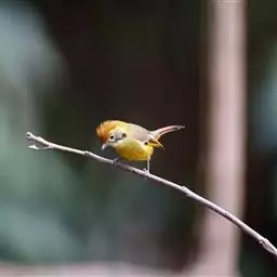 斑喉希鹛小型鸟类,体长14~17厘米。头具羽冠,前额和头顶羽冠金黄褐色,头侧灰黄色具黄色眼圈。…