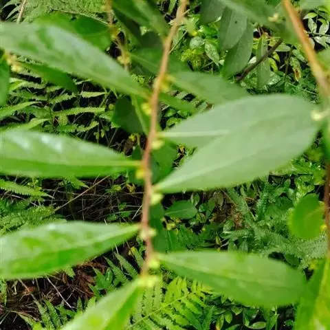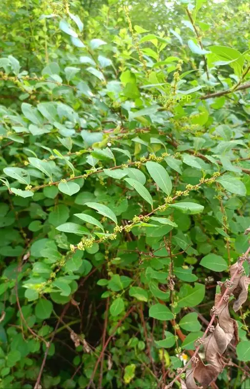 一叶萩为大戟科、白饭树属灌木,高1-3米,多分枝;小枝浅绿色,近圆柱形,有棱槽,有不明显的皮孔;全株无 毛。叶片纸质,椭圆形或长椭圆形,稀倒卵形,长1.5-8厘米,宽1-3厘米,顶端急尖至钝,基部钝至楔形,全缘或间中有不整齐的波状齿或细锯齿,下面浅绿色;侧脉每边5-8条,两面凸起,网脉略明显;叶柄长2-8毫米;托叶卵状披针形,长1毫米,宿存。