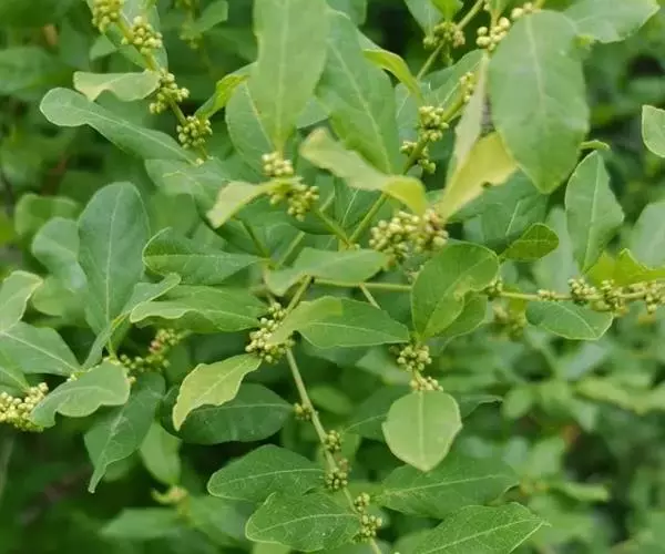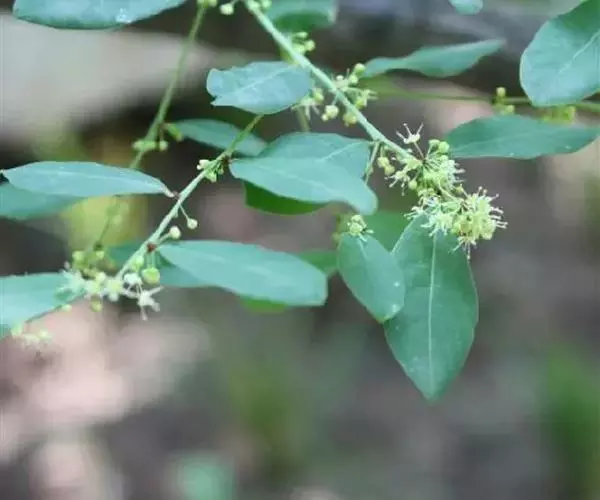 花小,雌雄异株,簇生于叶腋;雄花:3-18朵簇生;花梗长2.5-5.5毫米;萼片通常5,椭圆形、卵长1-1.5毫米,宽0.5-1.5毫米,全缘或具不明显的细齿;雄蕊5,花丝长1-2.2毫米,花药卵圆形,长 0.5-1毫米;花盘腺体究退化雌蕊圆柱形,高0.6-1毫米,顶端2-3裂;雌花:花梗长2-15毫米; 萼片5,椭圆形至卵形,长1-1.5毫米,近全缘,背部呈龙骨状凸起;花盘盘状,全缘或近全缘;子房卵圆形,3(-2)室,花柱3,长1-1.8毫米,分离或基部合生,直立或外弯。