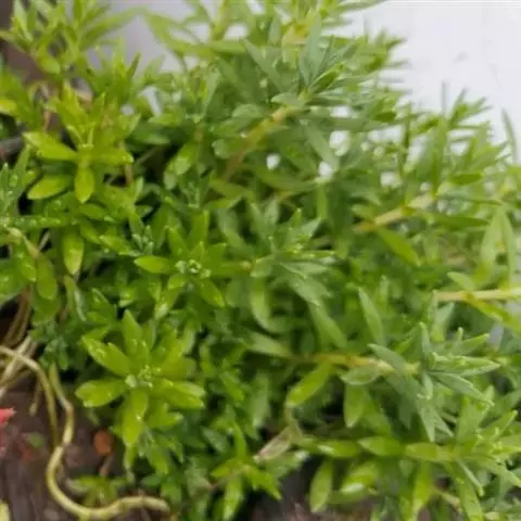 万年草白覆轮,属景天科植物。好全日照环境,半日照也能生长,但叶片排列会较松散。耐旱性强,介质略干再浇水。耐贫瘠,可不必施肥。夏季放于室外,粗放管理即可。分枝多,生长快,易爆盆,可做铺盆材料。生长期见干就浇,最好用浸盆法。