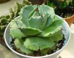 皇后龙舌兰是天门冬科、龙舌兰属多年生草本多浆植物。无主茎,叶丛生,莲座状,株幅40厘米。叶较多,…