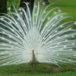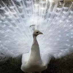 白孔雀,脊椎动物,鸟纲,雉科。其全身洁白无瑕,羽毛无杂色,…