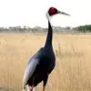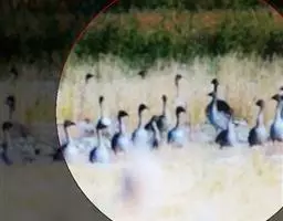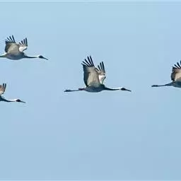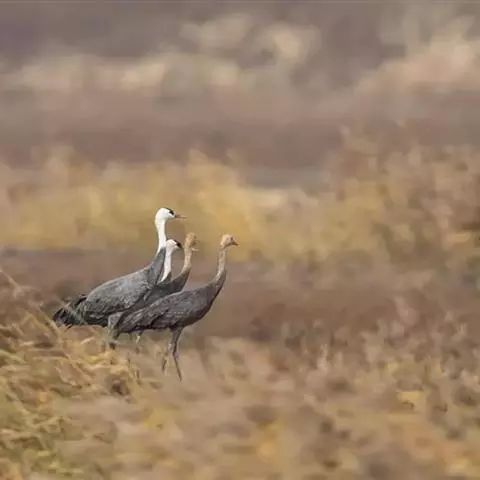 蓑羽鹤大型涉禽,体长68~92厘米,是鹤类中个体最小者。通体蓝灰色,眼先、头侧、喉和前颈黑色,…