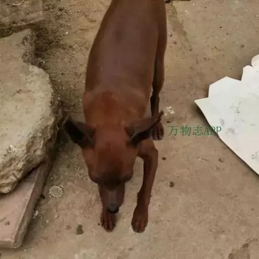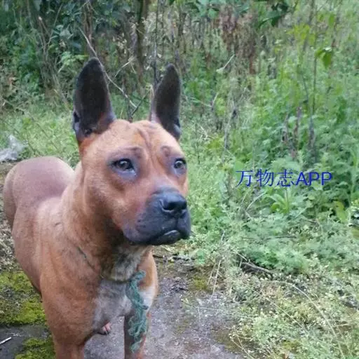 该犬体型属犬类之中等,成年犬小则几公斤,大则 30 公斤,肩高与身长比例约 1:1,毛色棕红、两耳直坚、尾如春笋直立、行动机灵敏捷、双目炯炯有神。该犬头大、嘴宽、多皱褶、两耳竖直、上唇下垂约 1cm,鼻吻较短,整个面部给人以威严多思与丑陋之感。头顶至嘴呈倒梯形、嘴型方正、头型比例为:耳前方至眼睛距离与眼睛至嘴前端约 3:2,颈部粗壮有力。